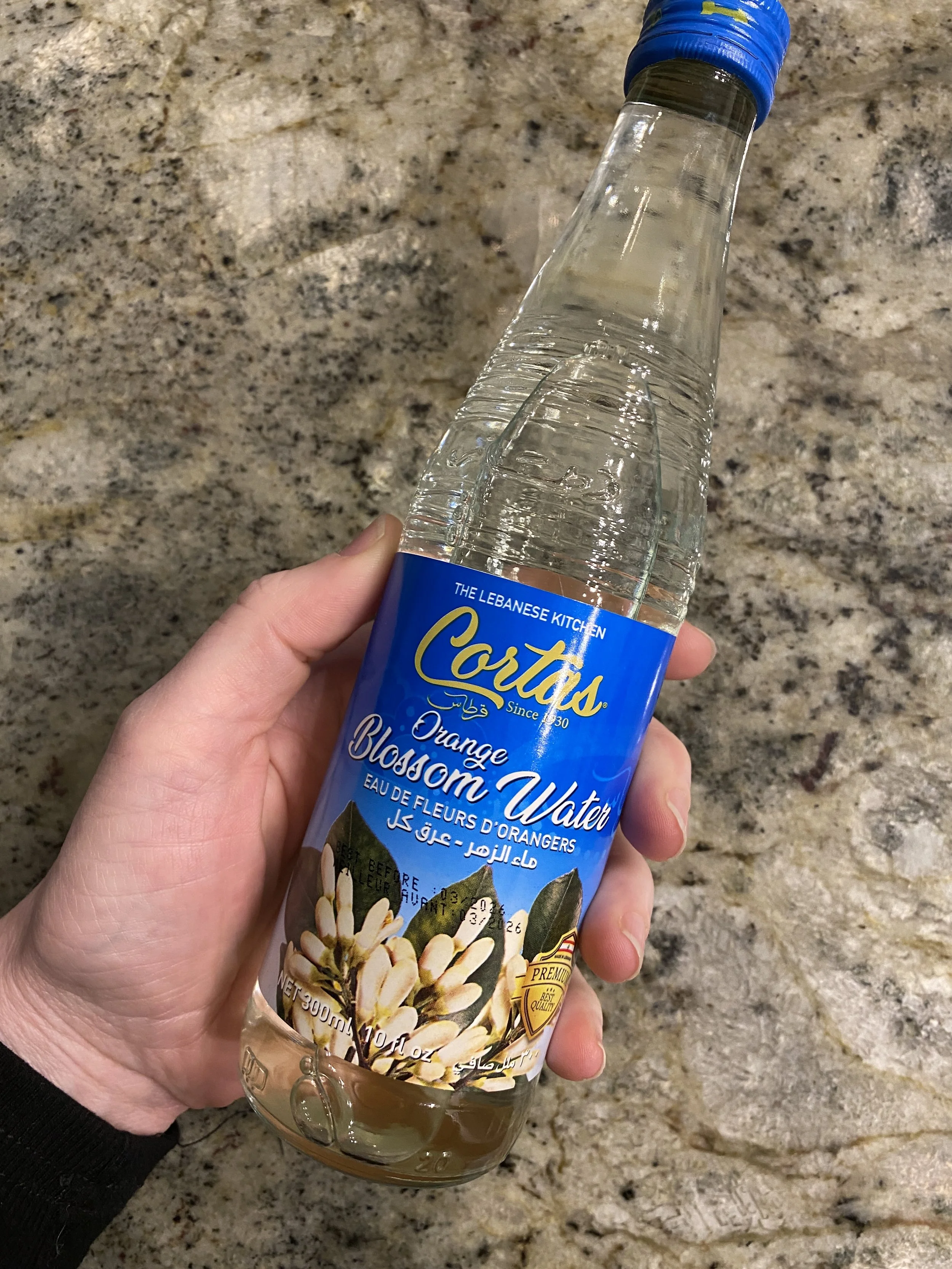 Orange Blossom Water from our favorite Moroccan Restaurant, Dar Esalaam in Wilsonville, Oregon.